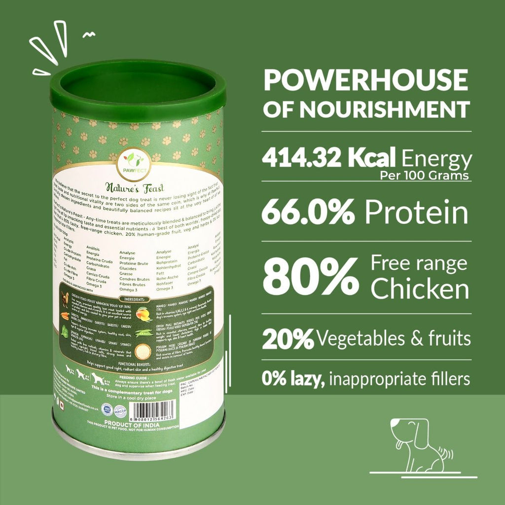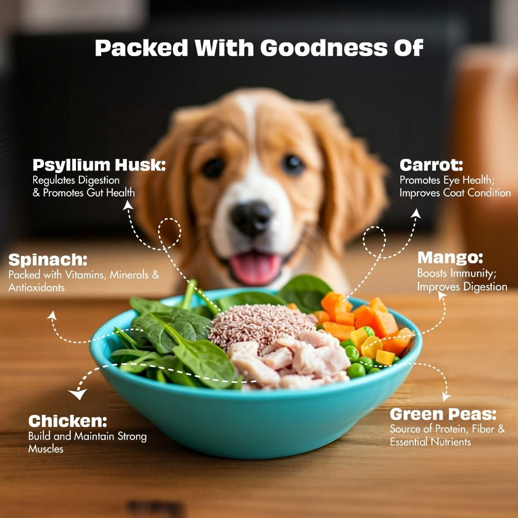 ✔️ 80% Galinha Real– Alto teor em proteína para músculos e força global✔️ Manga – Fornece antioxidantes naturais e favorece a imunidade✔️ Cenoura – Rica em betacarotenos para visão e pele ✔️ Ervilhas – fonte natural de fibra e proteína vegetal para saúde digestiva✔️ Espinafres – Repleto de ferro e vitaminas para vitalidade e bem estar✔️ Freeze-Dried (liofilizados) para Reter Nutrientes – Preserva sabor, aroma, e vitaminas essenciais✔️ Grain & Gluten-Free ✔️ Qualidade Human-Grade – ingredientes Puros, premium sem conservantes ou aditivos✔️ Formula poucos ingredientes – Ideal para estômagos sensíveis e propensos a alergias.